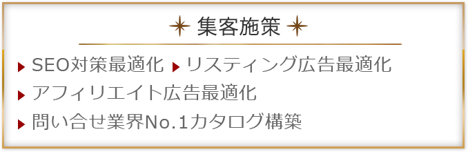 弊社は独立系の経営コンサルティング会社で、ウェブを活用したマーケティング施策に関しては日本トップクラスの実績を誇ります。あくまでも経営的観点から市場・競合環境を把握した上でマーケティングするため、コストパフォーマンスも最大化できるのが強みでございます。